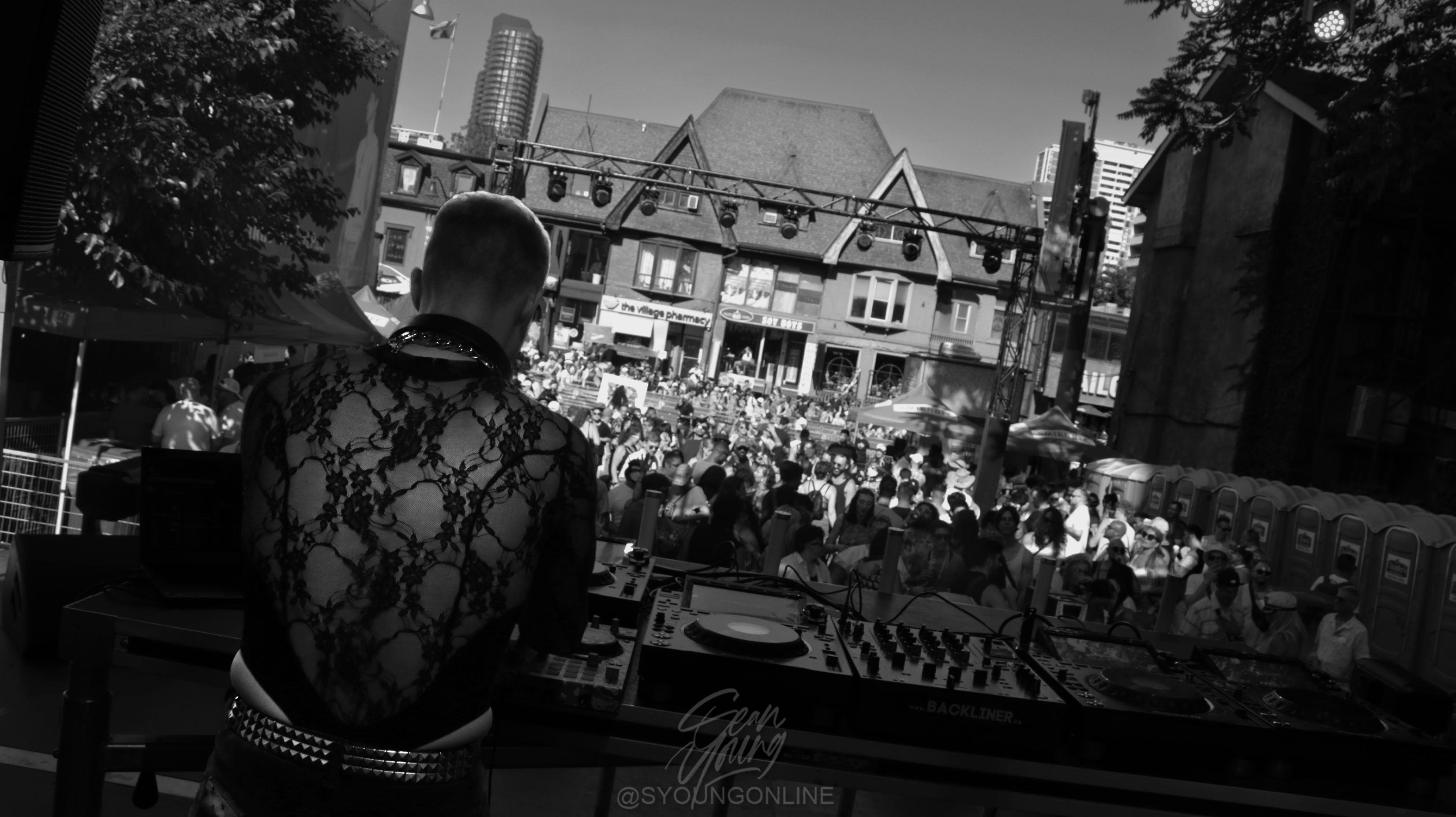 House, techno, dubstep, trance, and many blends of those and other experimental sounds resonate and echo through the Church/Wellesley Village corridor from the Central Stage located in the parking lot beside O’Grady’s Restaurant (across from Woody’s) on festival Sunday afternoons – closing out the month long celebrations.