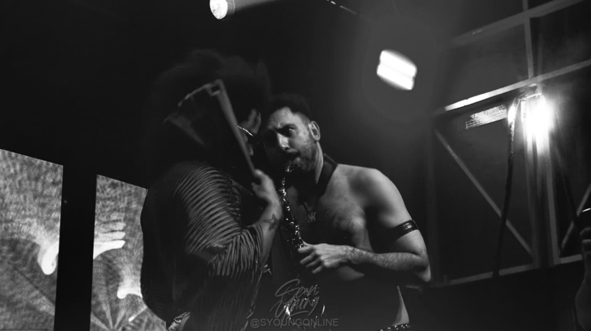 Ticky Ty and JB Sax share an impromptu dance moment together on stage during the finale of Dirty Disco at Pride Toronto Festival Weekend 2025.