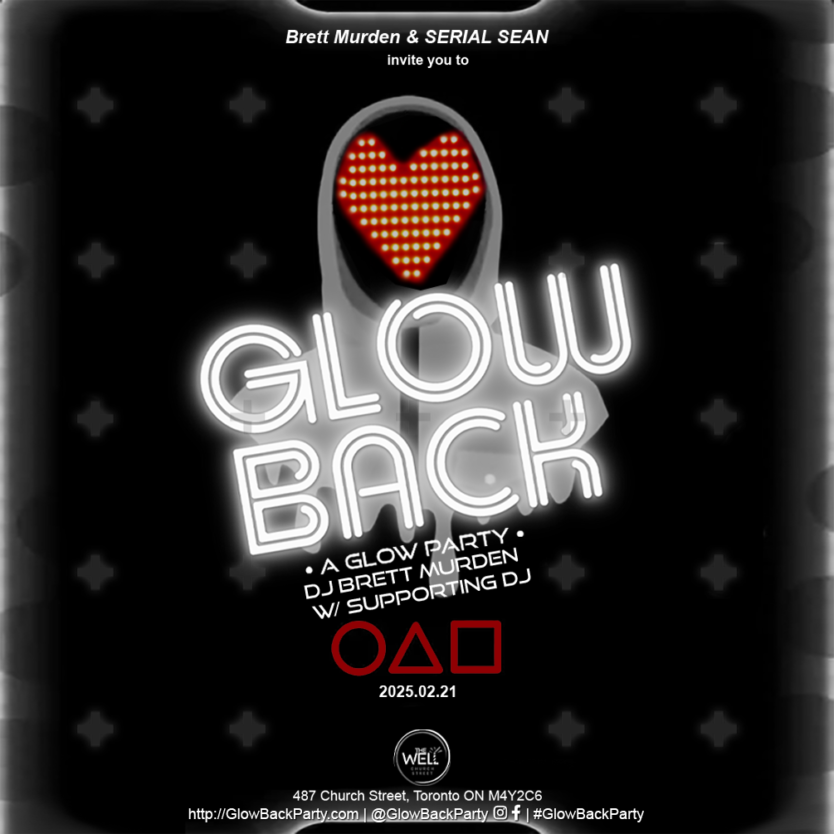 Join DJ Brett Murden (and rotating guests) for the return of GLOW BACK – a new fun-filled dance night throwing back to the visual aesthetic of the neon and glow events of the 80s and 90s.
